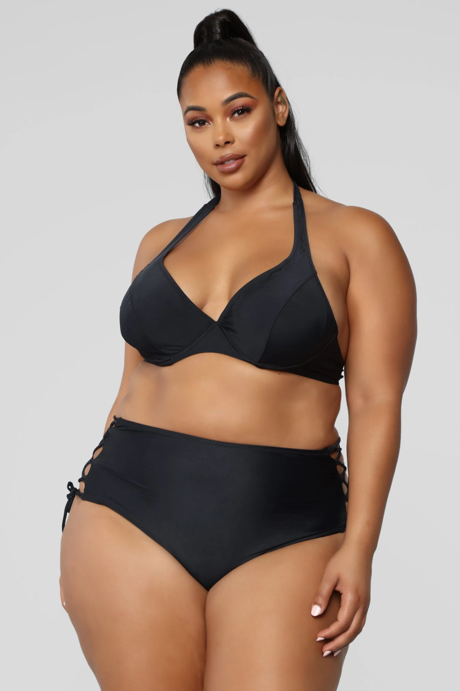 Cet ensemble bikini comprend un tissu extensible, un décolleté en V plongeant, une fermeture à nouer à la nuque