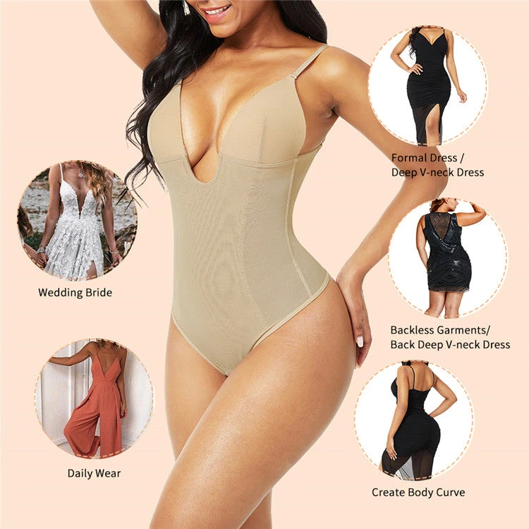 *1. Les motifs plongeants sur le devant et le bas du dos permettent au body de bien se coordonner avec les robes de mariée, les robes de soirée et autres vêtements décolletés et dos nu.