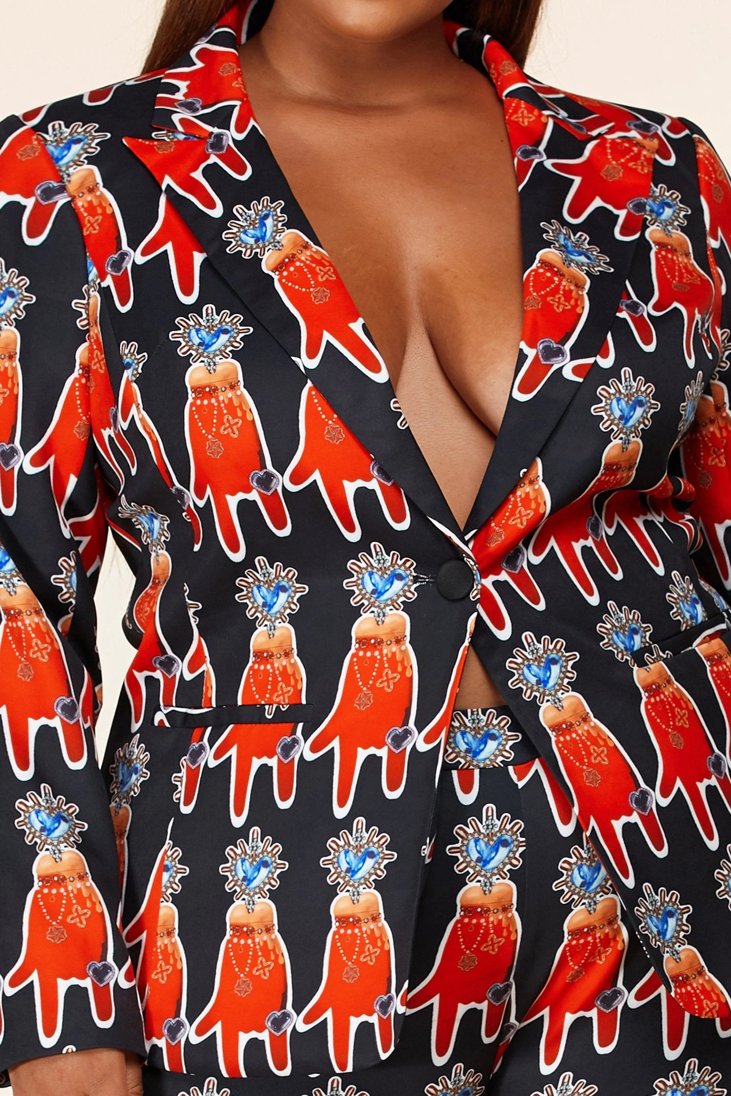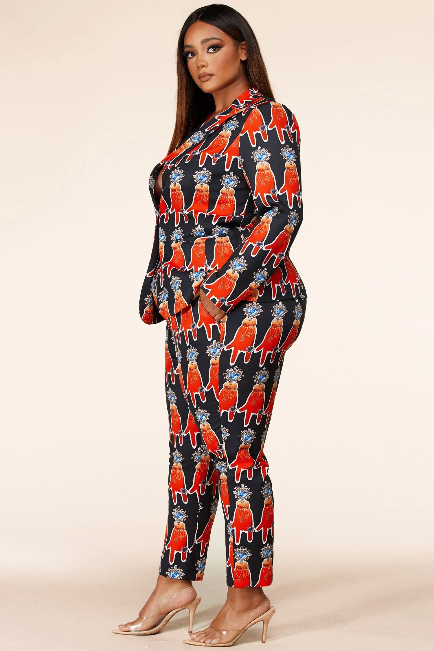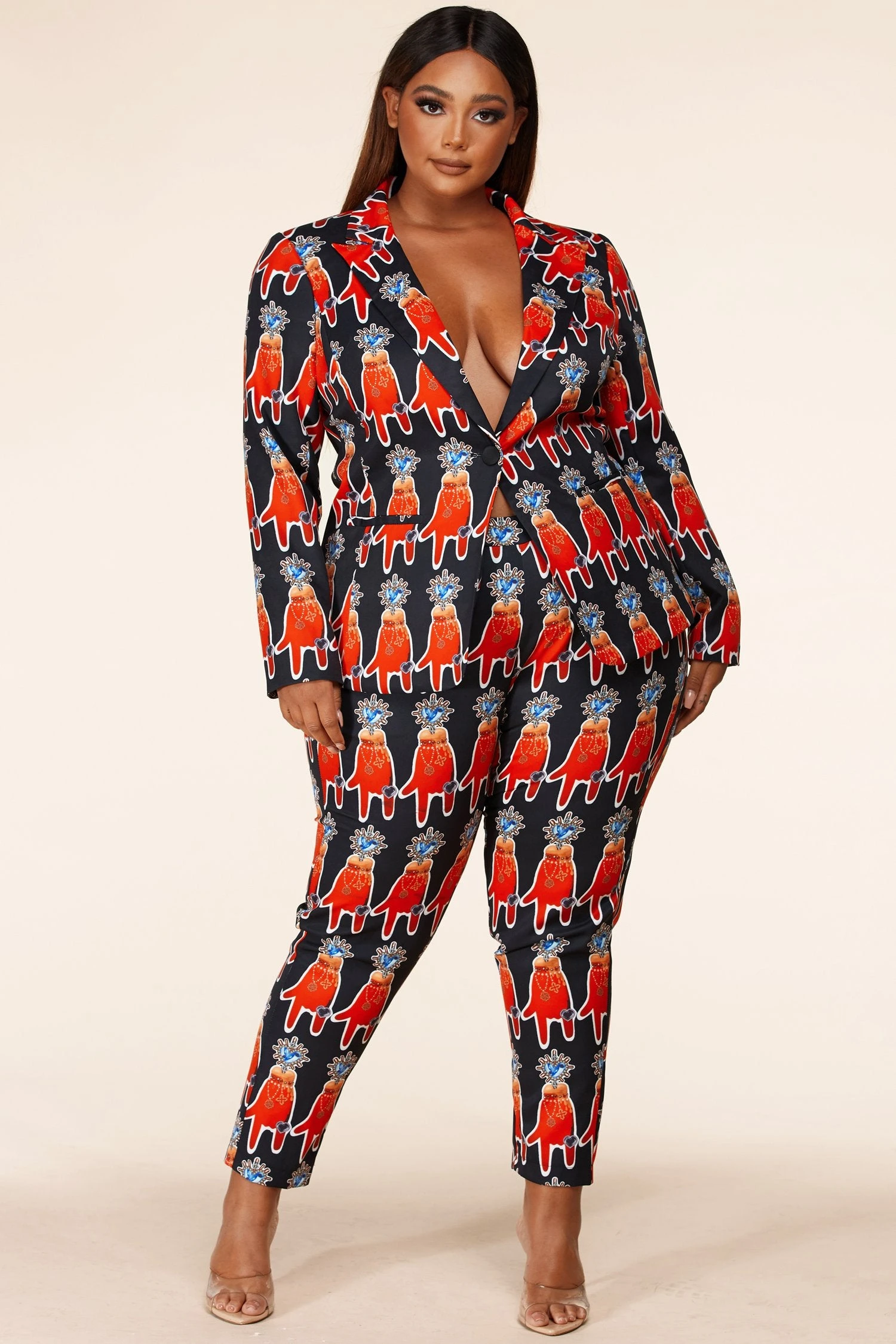 L’ensemble de pantalons Blazer luxe comprend un col, de longs revers et des épaules rembourrées avec des manches longues ajustées. Un corsage légèrement surdimensionné comporte trois poches , une fermeture à un bouton. Associez-le au pantalon assorti