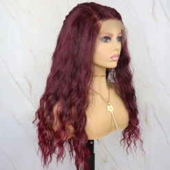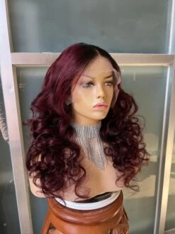 PERRUQUE SYNTHÉTIQUE FIBRE FUTURA CHEVEUX LÂCHÉS MIXTE NOIRE ROUGE ET VIN AVANT DENTELLE SUISSE 13X6