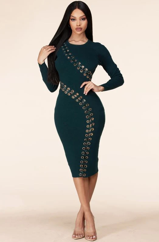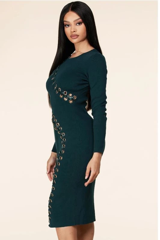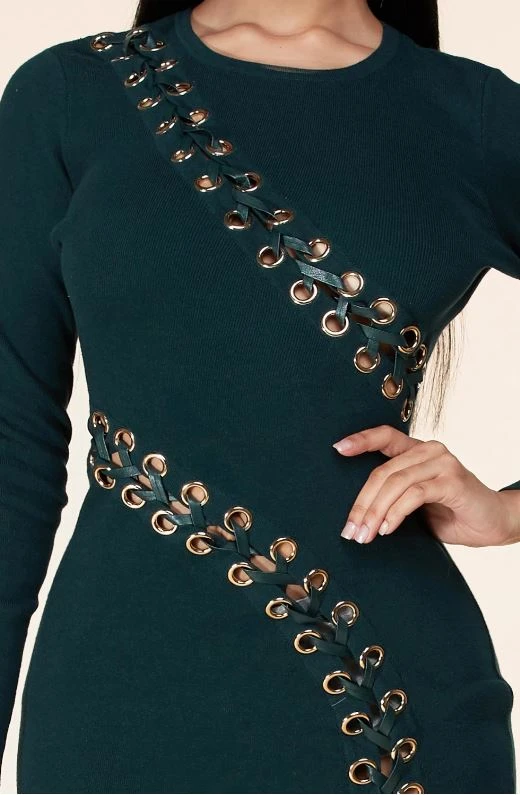 Avec des manches longues avec lacets en similicuir avec œillets dorés.